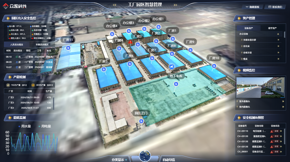 2. 實(shí)時(shí)動(dòng)態(tài)管理:集成物聯(lián)網(wǎng)設(shè)備、監(jiān)控與傳感器,打通 “數(shù)據(jù)采集 - 實(shí)時(shí)監(jiān)測(cè) - 智能分析” 全鏈路,構(gòu)建超越物理空間的數(shù)字孿生系統(tǒng),實(shí)現(xiàn)園區(qū)狀態(tài)實(shí)時(shí)可控。