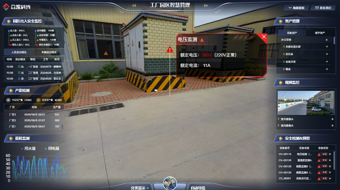 • 攝像頭與三維空間深度耦合,結(jié)合 AI 算法檢測(cè)設(shè)備故障、安全隱患等異常活動(dòng),觸發(fā)實(shí)時(shí)警報(bào)。