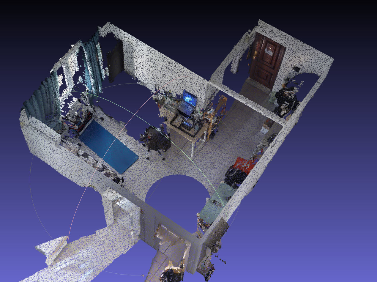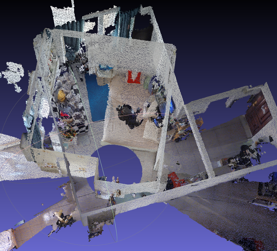 經過一系列的配準工作,每個掃描點位獲得的三維剛體數據就被擺放到了同一坐標系下的合理位置,最終拼成了一個完整的三維模型,如下圖: